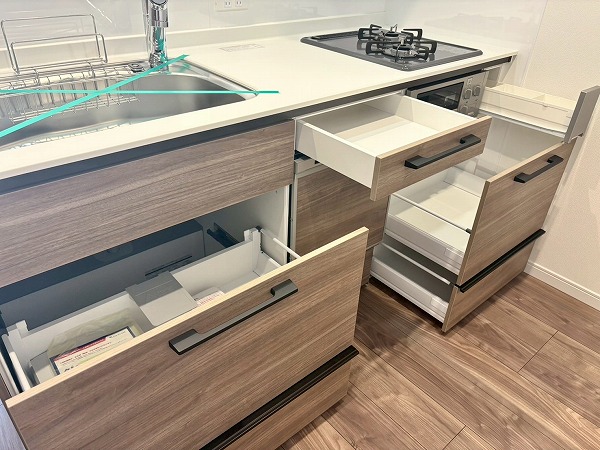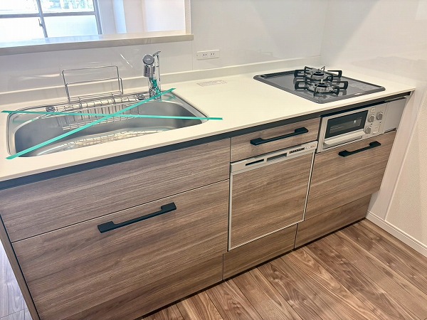 新しくなったキッチンは木目で統一され、落ち着いた雰囲気が漂います✧対面式のため、お料理中も会話がはずみそう♪スペースにはゆとりがあるので、カップボードを置けば収納力もばっちり。しかも食洗機付きで、家事の手間をぐっと減らせます。