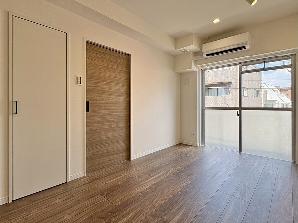 もう1つの洋室は約4.4帖ほどで、北東向きの大きな窓からバルコニーへ出られます。風と光が気持ちよく入って、毎日ハッピーな気分に♪きなクローゼットもあるので、洋服や季節ものの荷物もスッキリ収納可能。