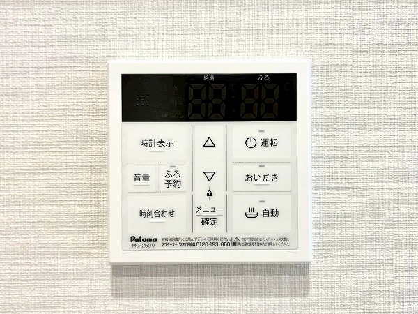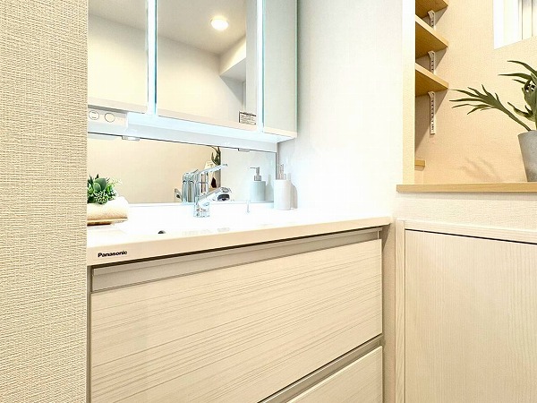 バスルームは木目を基調としたナチュラルデザインを採用し、1日の終わりに心からくつろげる落ち着いた空間に仕上がりました!追い焚き機能付きで帰宅時間の異なる日も快適に湯船を楽しめ、浴室乾燥機も備えているため天候に左右されず洗濯ができるのも嬉しいポイント。