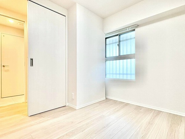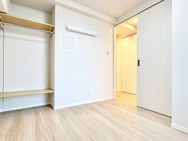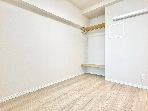 リビングに隣接する約4.9帖の洋室は、暮らしに寄り添うフレキシブルな一室。WICを備え、空間をすっきりと保てます。扉を開ければリビングと一体感のある使い方が可能で、閉めれば落ち着いたプライベート空間に♪