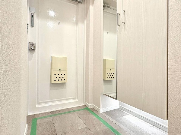 オートロックに加え、自主管理ながら週2回管理人さんが見守るエントランス。館内は隅々まで清掃が行き届き、日々の管理体制の良さが自然と伝わってきます。