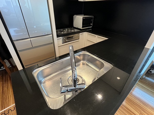 コの字型のキッチンにもたっぷりとキャビネトが完備され、収納力には申し分ありません。ペットの飼育が可能な点も嬉しいですよね。利便性の高い街でのびのびと暮らしたい方にピッタリのお部屋でした。 ライター:kayo【26A22】