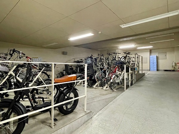 裏手にはターンテーブル&機械式の駐車場と、屋内駐輪場が用意されています。