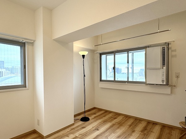 約9.5帖のメインルームは、東側の大きな窓が印象的。朝の柔らかな光が室内を明るく照らします。リビングと洋室には新設のウィンドエアコンを備え、季節を問わず快適に。さらに2重窓設計で、防音性・防犯性にも配慮されています。