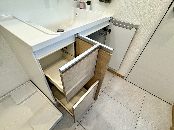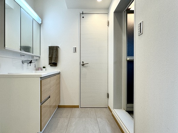 バスルーム・トイレ・洗面台・ランドリースペースがひとつに集まったサニタリールーム。水回りをまとめることで動線がコンパクトになり、毎日の家事が効率的に行えます。