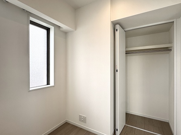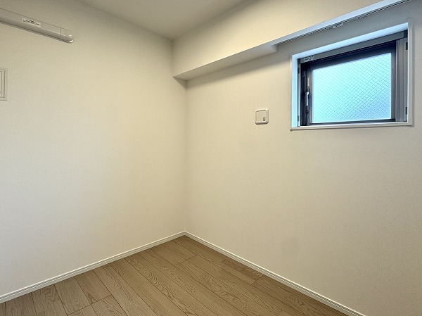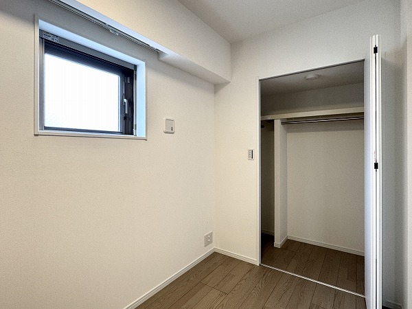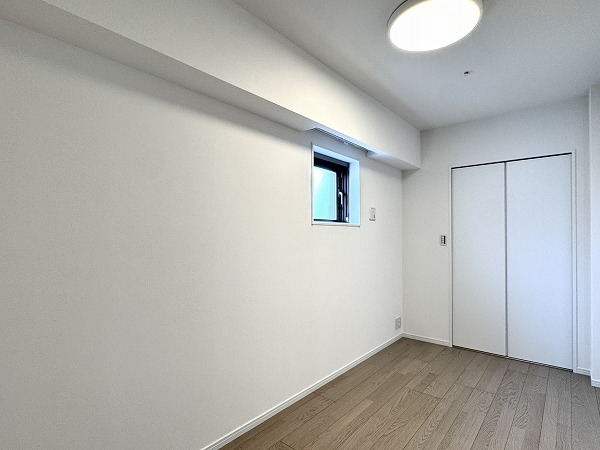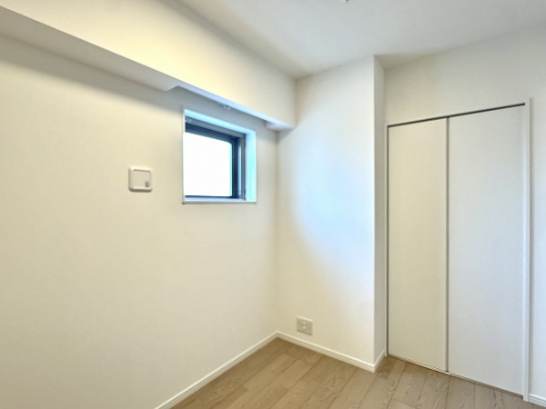 こちらはおよそ3.5帖の洋室。コンパクトな空間ですが、角部屋の利点が活かされた二面採光となっているので視線が抜けてのびのびと感じられました。寝室としても、書斎や趣味の部屋としても活用できそうです。