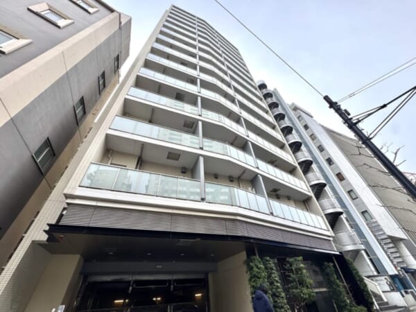 こちらが2013年11月築、鉄筋コンクリート造14階建ての『リビオ目黒リバーサウス』 。総戸数は78戸となっています。落ち着いたグレーのシンプルな外観はシンプルながら洗練された印象に。飽きがこないため長くお住まいいただくのにピッタリですよね。