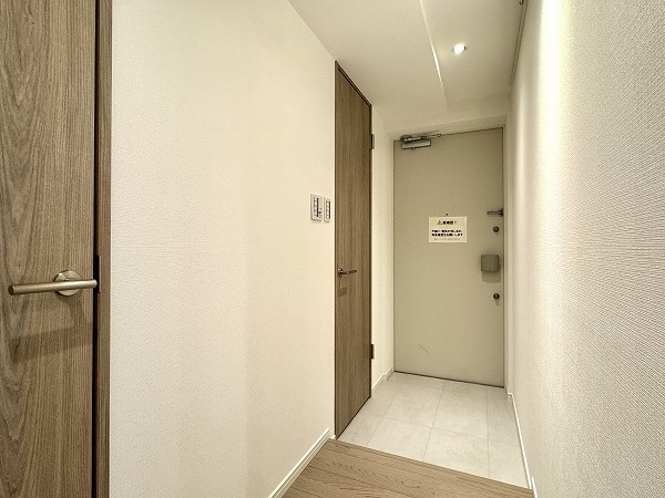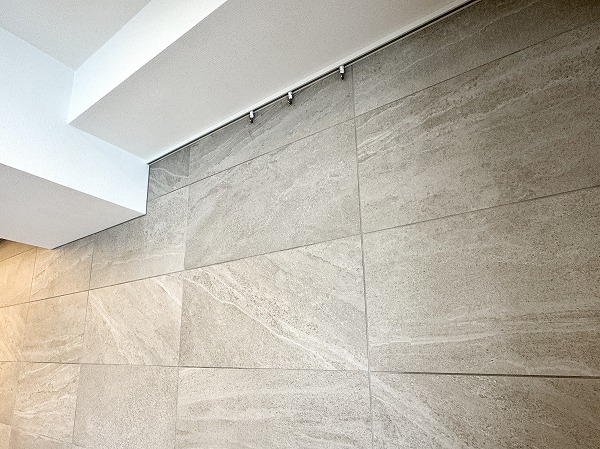 エントランスは高級感のあるタイル貼りの壁と、採光性の高いガラスのスライドドアが採用されたモダンでスタイリッシュな空間となっていました。オートロックが取り入れられセキュリティー面も安心です