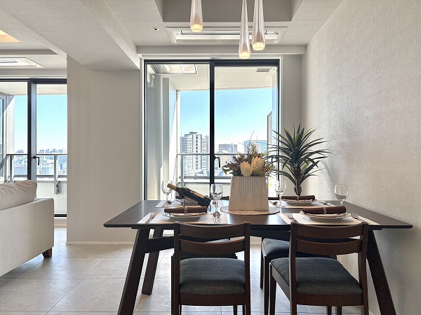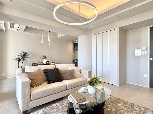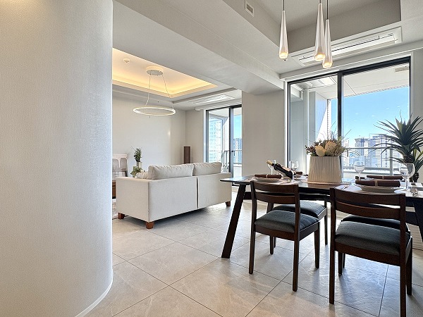 今回ご紹介するのは『品川Vタワー』21階、専有面積87.08㎡・2LDKのお部屋です。2025年12月にリノベーションが完了し、上品で高級感溢れる空間へと生まれ変わりました✧天井や壁の立体的な造形と、タイルやアクセントクロスの効果的な配置にこだわりを感じる、都会的でモダンなお部屋です!
