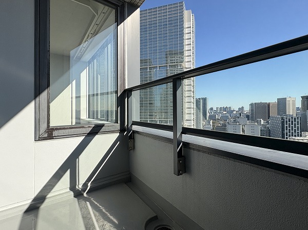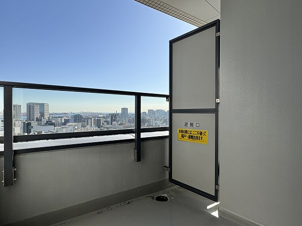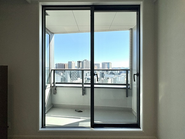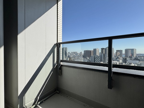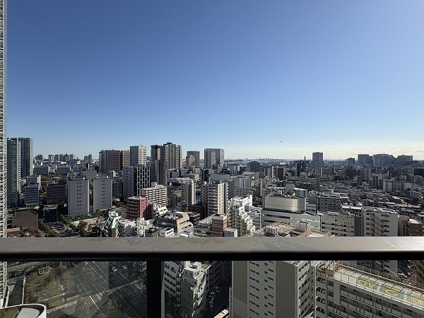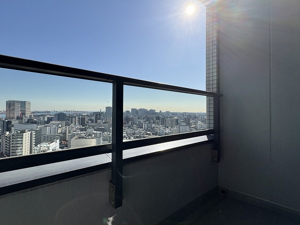こちらが眺望です。遠くにはかすかに東京湾が望めました!正面には高い建物がないので、広い空を独り占めできますよ♪バルコニーに敷物を敷いてぼーっと空を眺めてみたり、椅子を置いて1日中読書にふける、なんて休日も素敵です。タワーマンション生活を最大限楽しみましょう✧