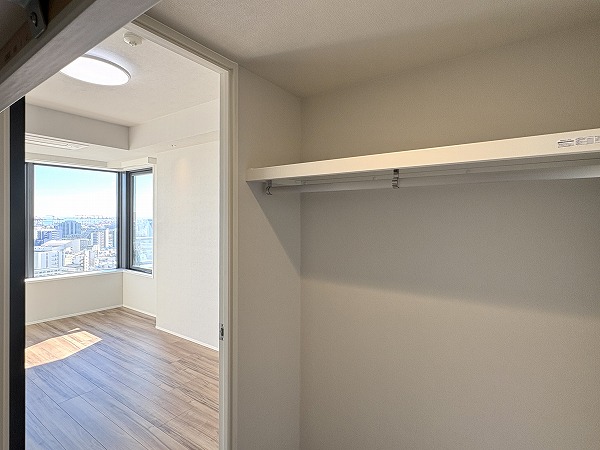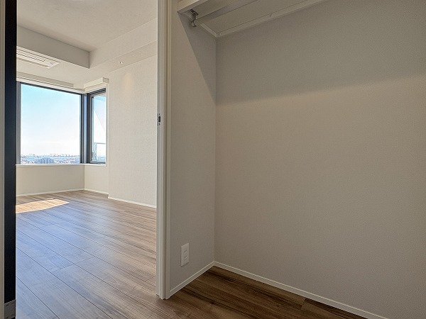 こちらはリビングの横にある約9.3帖の洋室です。寝室としてはもちろん、仕事部屋や趣味のお部屋としても活用していただける広さ♩また、ウォークインクローゼットを備えているので、大量の衣類や大型の荷物はこちらに収納を!ライフスタイルに合わせて形を変えられる素敵なお部屋でした✧