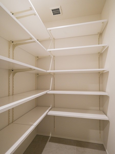 約3.0帖のゆとりあるシューズインクローゼット。収納力に優れ、玄関に生活感を出さずに暮らせるのがポイントです。靴はもちろん、アウトドア用品や季節物、防災グッズまでまとめて収納可能。理想の「片付く暮らし」を叶えてくれる空間ですよ✦