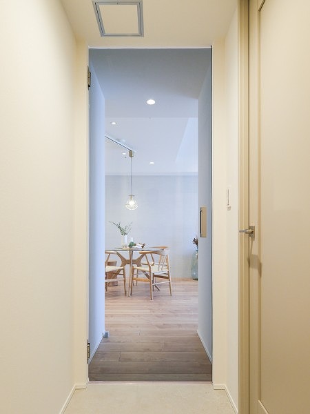 外気の影響を受けにくい内廊下は、木材をあしらったやわらかな雰囲気。カーペット敷きで足音も気になりにくく、夜の帰宅時も安心感があります。各階ダストステーションやトランクルームなど、見えない部分の快適さも充実。