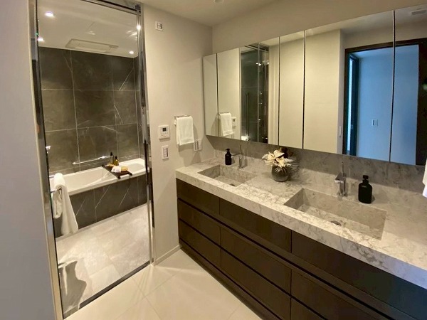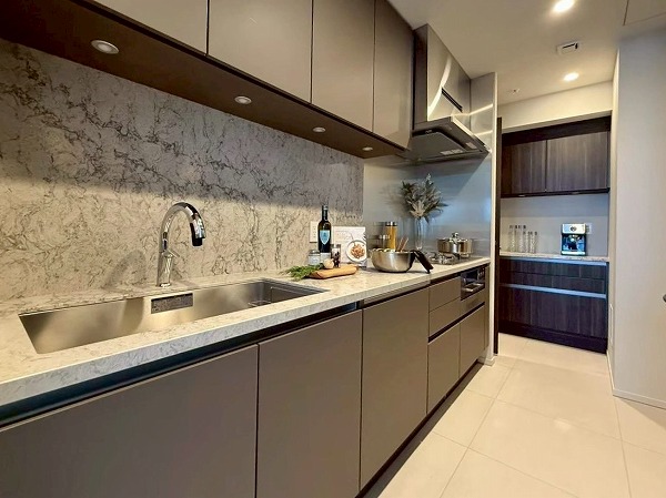 老舗旅館の跡地に建てられた『アトラスタワー五反田』。美しい桜並木のほとりに堂々佇む姿は存在感を放ちます。エントランスゲートを抜けると喧騒から静寂へ…。充実した共用施設にラグジュアリーホテルのような内装デザイン、至る所までこだわりが詰め込まれた上質な空間が広がります。今回ご紹介するお部屋は22階の高層フロアにある3LDK。ご家族での住まいに是非オススメしたいお部屋です。隣合う住戸の少ない角部屋は、騒音トラブルのリスクが少ないメリットが。ウォークスルーキッチンを採用するなどスムーズな動線を確保しています。開放感溢れる景色は圧巻。ご家族揃ってのお引越し先にいかがでしょうか♡