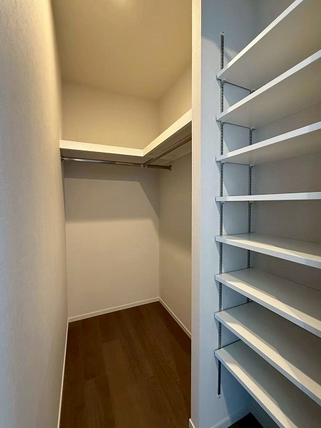 3つの洋室のうち2部屋にはウォークインクローゼットを完備。奥行きがあり収納力は抜群です。ハンガーパイプに加え枕棚も設けられており、衣類はもちろんバッグや小物、季節家電までたっぷり収納可能。住空間をすっきりと保て、生活感を抑えた美しい室内を維持できるのは嬉しいですよね。