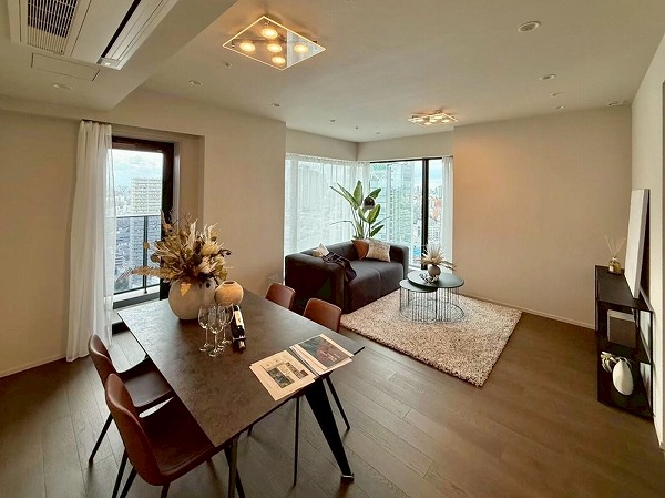 今回ご紹介したのは『アトラスタワー五反田』の最上階・30階部分のプレミアム住居。室内は専有面積は109.14㎡の3LDK。玄関扉を開けた瞬間に感じるのは、ゆとりという言葉がふさわしい空間の広がり。ファミリーでもゆったりと暮らせる設計で、それぞれの居室がしっかりと独立しながらも、住まい全体に一体感があります。新築・未入居という希少な一室だからこそ叶う“完全に自分たちだけの新生活”。この特別感は何ものにも代えがたい魅力です。