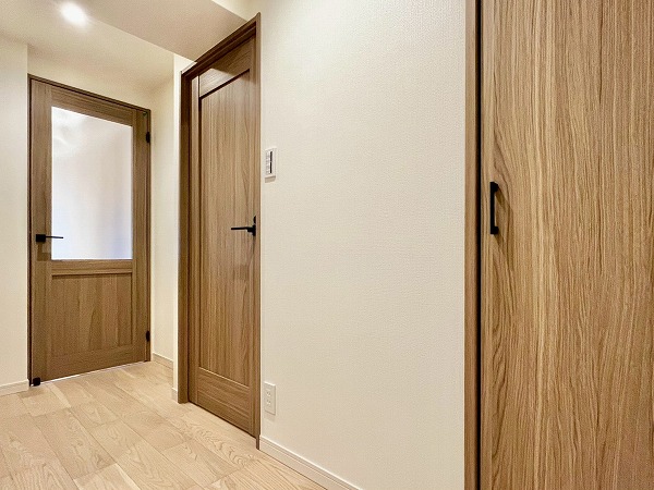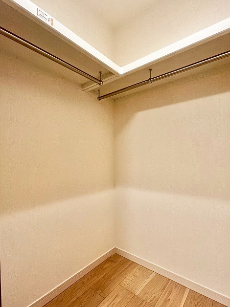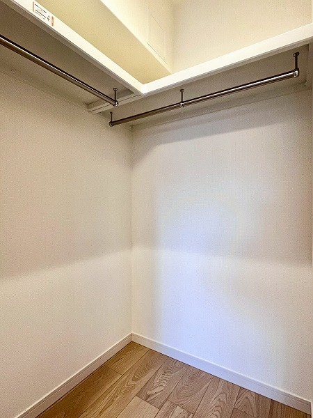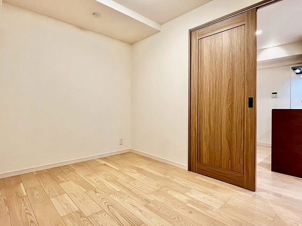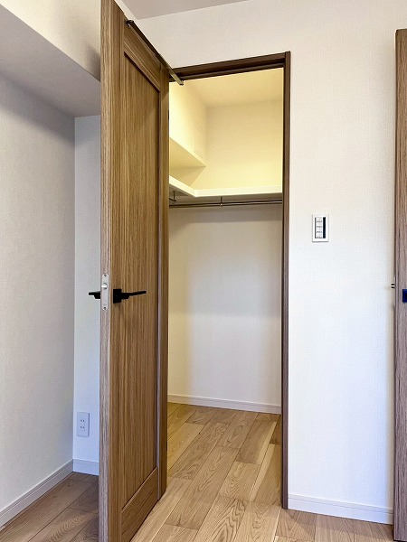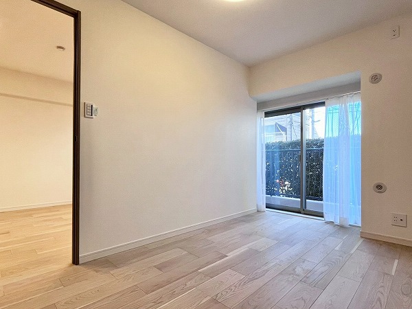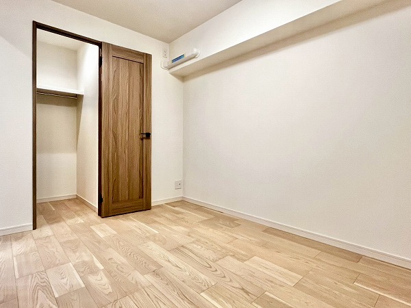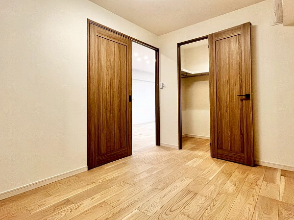 LDK内から出入りできる6帖の洋室は、角部屋につき四方が隣家と接していないプライベートな空間。安心して身体を休めることのできる主寝室としても最適です。こちらの洋室ともう1つの洋室にはウォークインクローゼットを完備。お洋服はまとめて1か所に収納することで、秩序溢れる軽やかな生活が実現します。