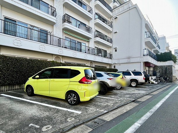 こちらは外に設けられた駐輪場。スタンドが等間隔で配置され、綺麗に停められていました。雨風よけカバーを合わせてご使用いただけば、大切な愛車を汚れから守ることができますね。すぐ隣には駐車スペースも完備。