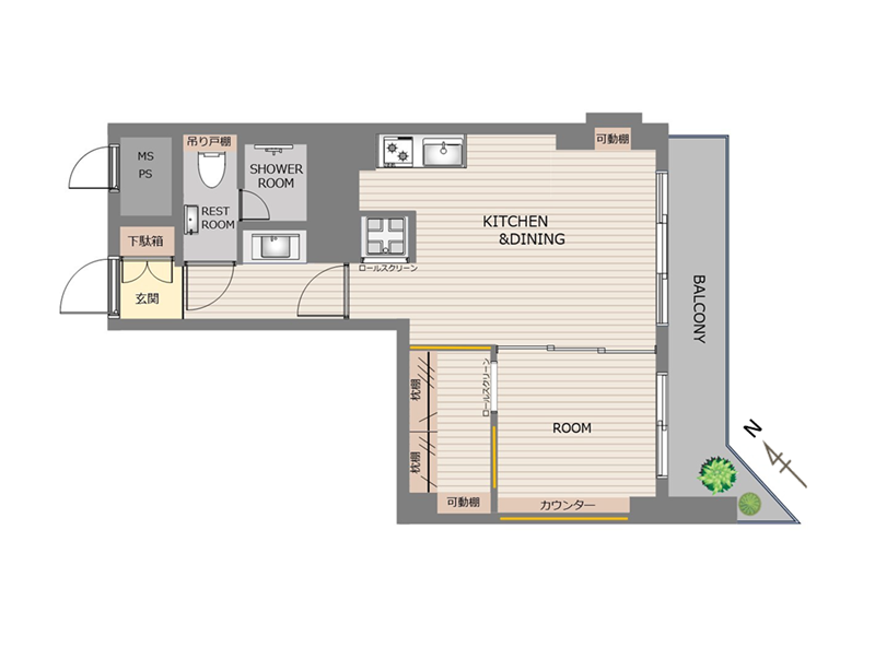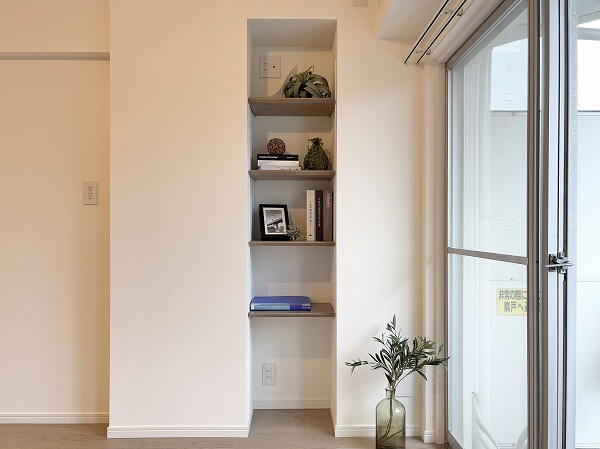ダイニングキッチンには可動式の棚が設けられています。小物の収納に使用したり、お気に入りの雑貨や好きなタレントのグッズを飾ったりしても良いですね♪お部屋の一角に自分だけの特別なスペースを作ってみてはいかがでしょうか。