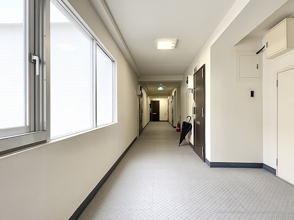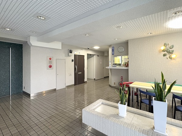エントランスには管理人室が設けられていて、居住者さんの暮らしをサポートしてくれます◎椅子とテーブルがご用意されているので、小休憩や待ち合わせにご利用いただけそうです。また、夜間オートロックが完備されているため、セキュリティ対策も万全。