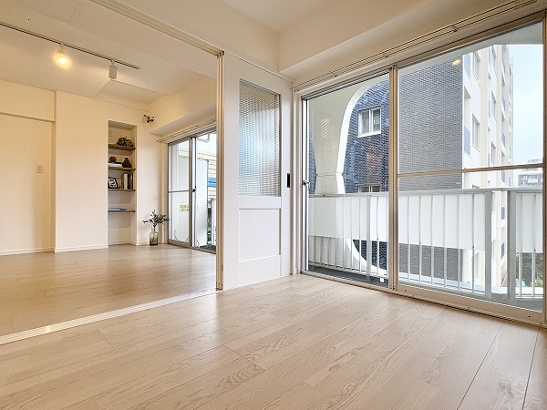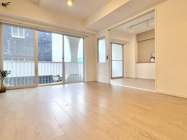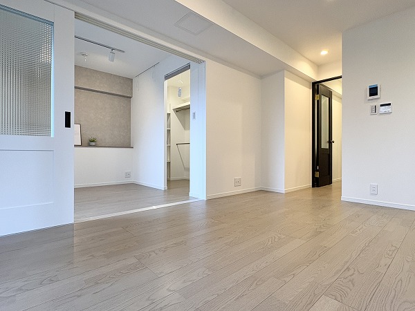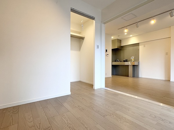 洋室はダイニングキッチンと隣接しており、引き戸で簡単に空間を分けることが可能です。柔らかな日が差し込む南東向きのお部屋で、ゆっくりとくつろげる空間になりそう◎オシャレなカウンターには、絵画を飾ったりテレビを設置したりしてみてはいかがでしょうか。
