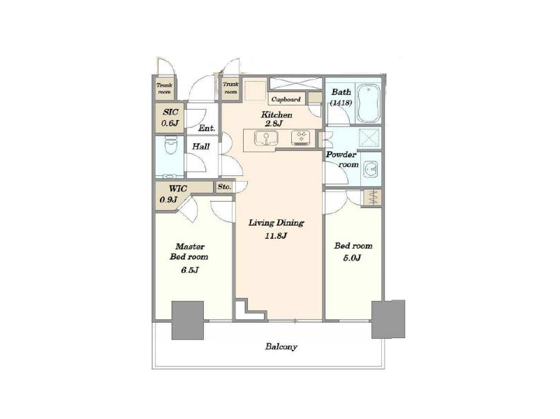 おおよそ6.6帖の主寝室は陽当たりが良く、お部屋全体が明るく温かな印象。毎朝心地の良いお目覚めが期待できそうですね♡さらには大容量サイズのウォークインクローゼットが備わっているので、年々増えていくお荷物にも対応可能。