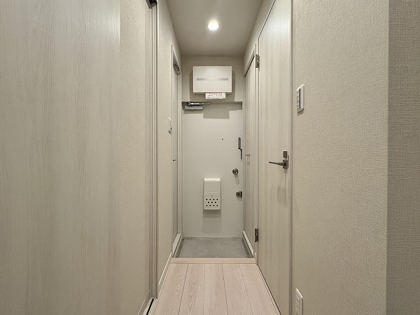 エントランスには管理人室を備え、優しい管理人さんが居住者の安全を見守ってくれています。撮影時は管理人さんが共用スペースを清掃しており、管理体制の良さが見て取れました。フロア間はエレベーターに加え、2つの外階段で移動可能。外階段は避難経路としての役割を持つため、緊急時には外階段をご活用くださいね。