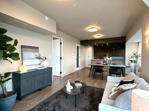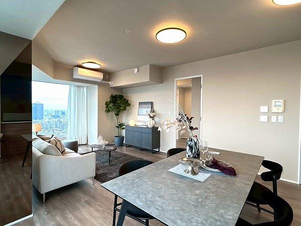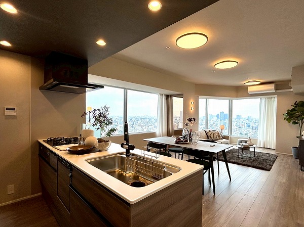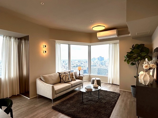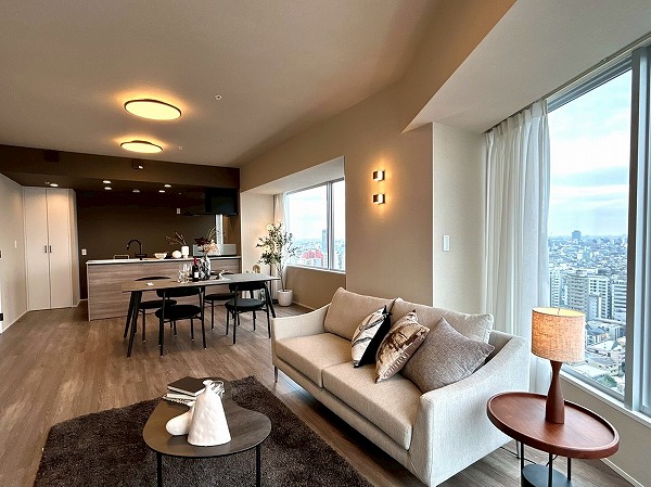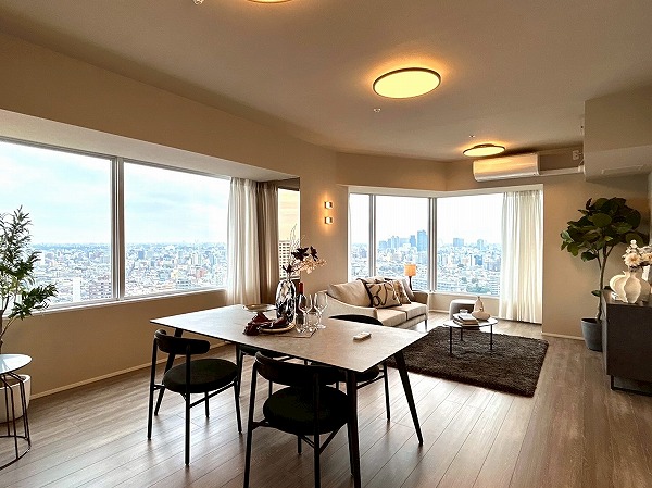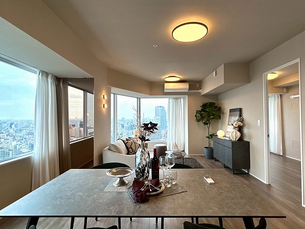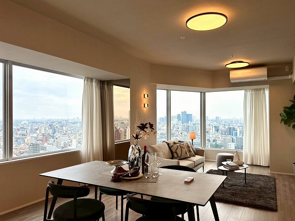今回ご紹介するのは専有面積76.97㎡、2LDKのお部屋です。大きな窓からは都内を眺望でき、外を眺めながらゆっくりと過ごせそうですね♪お部屋全体も明るく、開放感があります◎