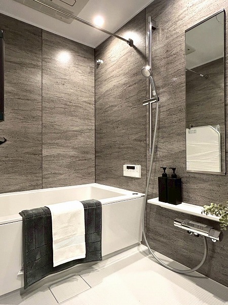 バスルームは浴室乾燥機、追い焚き機能付きで、いつでも快適な温度で入浴ができますよ。木目調のクロスは落ち着いた印象と清潔感があります✦