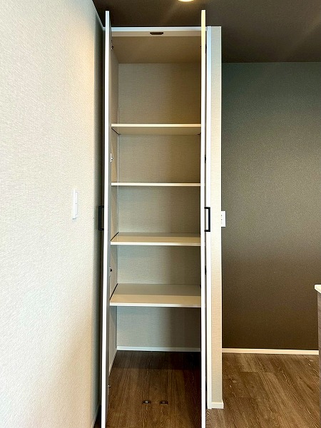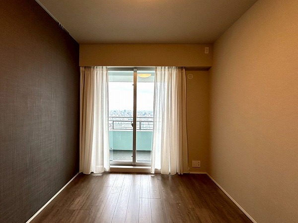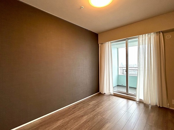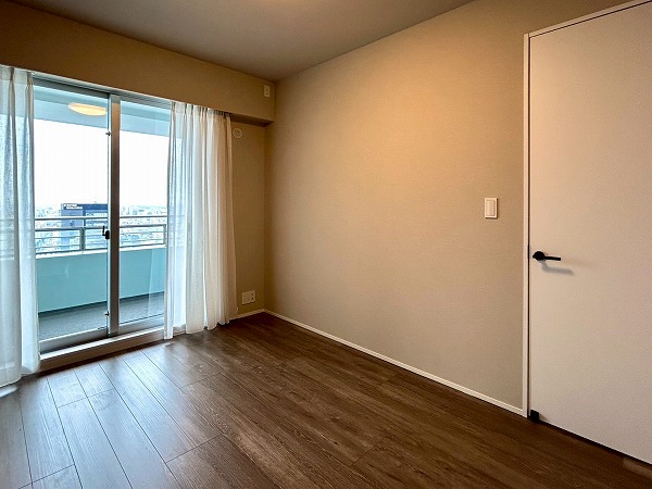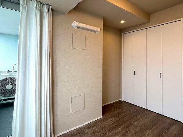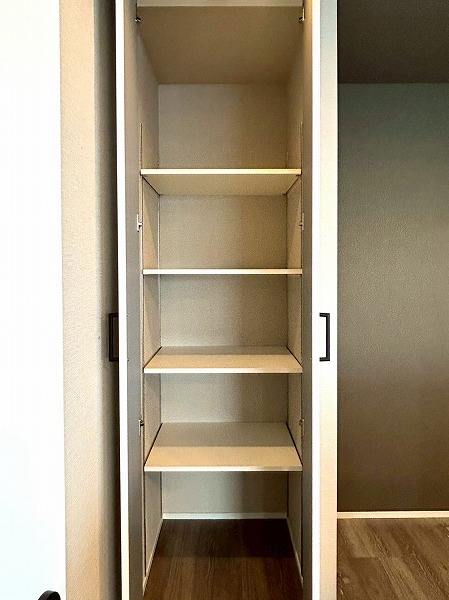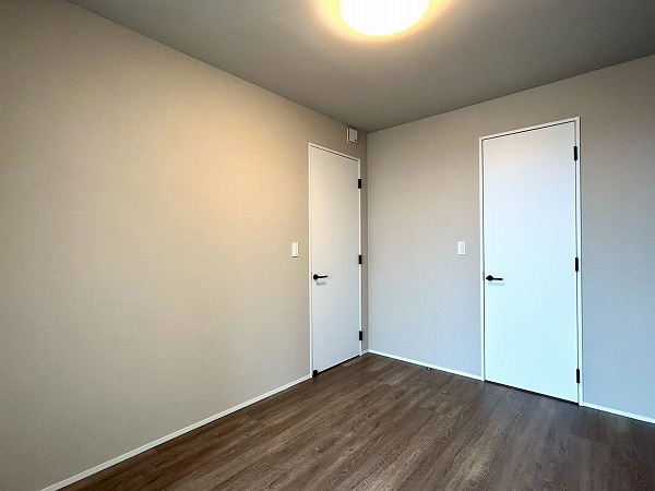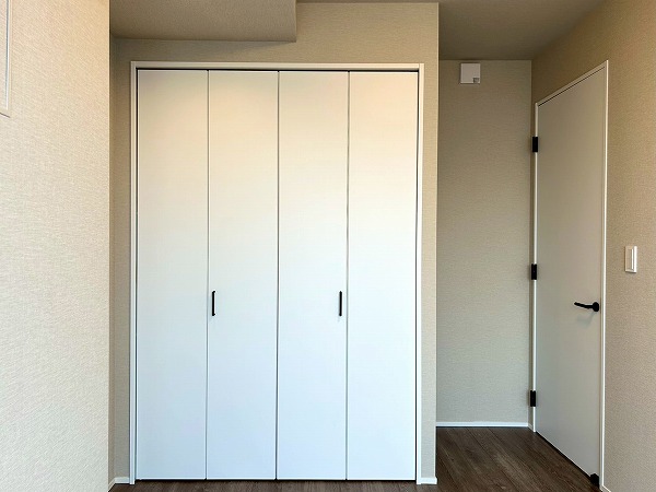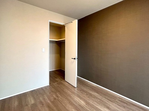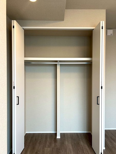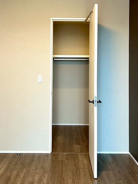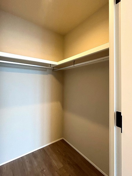 約6.0帖の洋室にはウォークインクローゼットが設置してあります♪上の棚にオフシーズンのお洋服を収納しておけば、毎日のお洋服の取り出しがスムーズに行えますね。