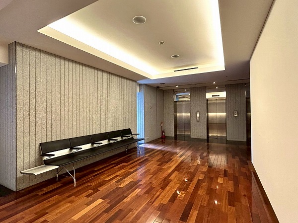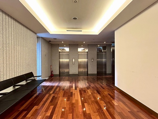 エレベーターは3基設置しており、混雑時することなく移動できそうです。エレベーターホールが広々としているので複数人待っていてもスペースにゆとりがあり、ベビーカーなどの移動もスムーズ!