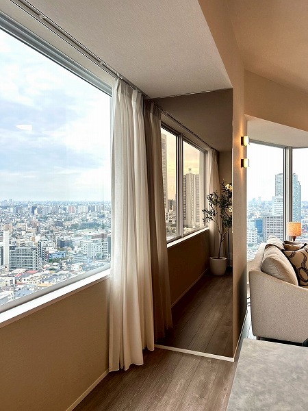 なんと言ってもたまらないのはこの大きな窓からの眺め♡毎日、特別な景色を思う存分堪能していただけます!夜は都心の夜景を眺めながらゆっくりすればリラックスできそうですね。