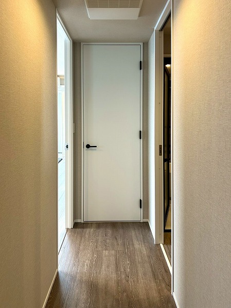 約23.2帖のLDKは広々しており、インテリアコーディネ-トを存分に楽しめますね♡ベージュのクロスと木目調のフローリングは温かみがあり、落ち着いた印象があります。壁には高さの有る姿見が設置してあり、毎朝の身支度チェックもバッチリ行えそう✧