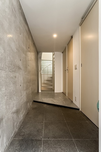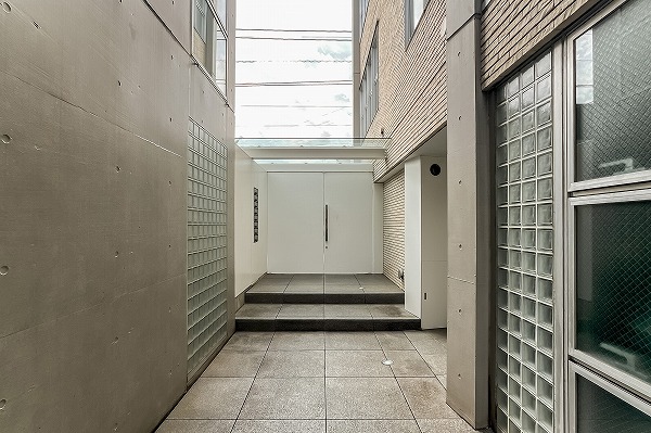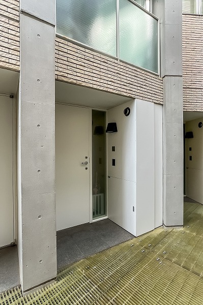 住戸同士が向かい合いながらも、外からは見えにくい配置が工夫された玄関まわり。総戸数はわずか8戸と、プライベート感を大切にしたい方にとって魅力的な規模感です。