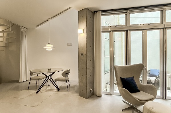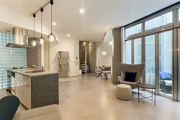 メゾネット住戸ならではの魅力といえば、この螺旋階段。柔らかな曲線を描くデザインが空間のアクセントとなり、住まいに遊び心を添えていました。日常の動線の中に、さりげない高揚感をもたらしてくれますよ♪