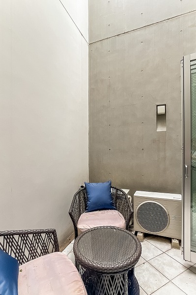 住戸には開放感あふれるテラスが設けられています。吹き抜け構造のため、空を近くに感じられる特別なアウトドア空間。天気の良い日にテーブルやチェアを置いてランチやカフェタイムを楽しむなど、暮らしに豊かな余白をプラスしてみては☀
