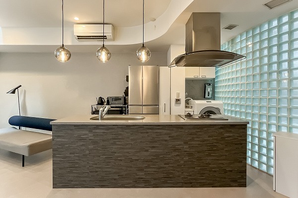 キッチンはリビング全体を見渡せるオープンタイプ。調理をしながら家族との会話が自然と生まれる、コミュニケーション重視の設計です。スタイリッシュなデザインに加え、広めのワークトップを確保しているため、下ごしらえから盛り付けまでスムーズ。