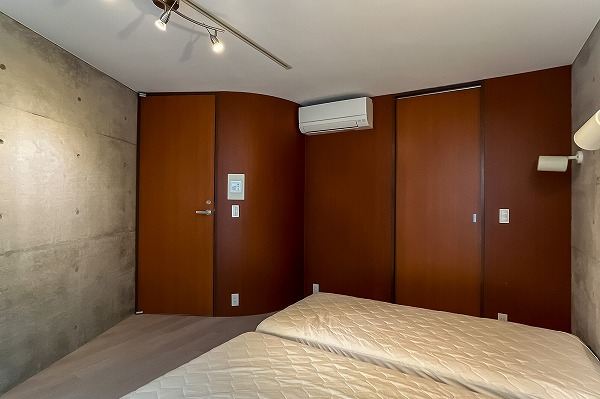 2階に位置する約8.0帖の洋室は、主寝室として申し分のない広さ。ダブルベッドを置いても余裕があり、サイドにデスクやチェストを配置することも可能です。特徴的な間取り形状のため、家具選びやレイアウトを考える時間も楽しめそう。バルコニーへ出られるのも嬉しいポイント。