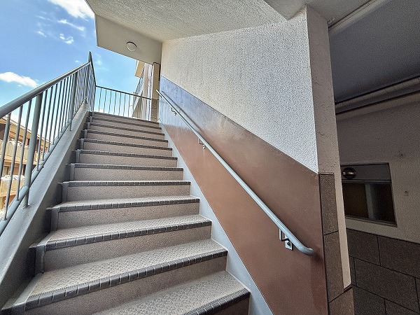 外廊下仕様の共用部は、風通しが良く明るい空間。柔らかい陽光が差し込み、朝の通勤や帰宅時に気持ちの良い一歩を踏み出せます。