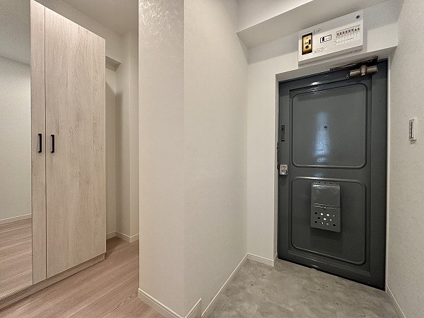 建物へのアプローチは奥行きのあるゆったりとした造りで、通りからの視線を和らげます。エントランスホールはなく、そのまま共用廊下に繋がるスマートな動線が魅力です。