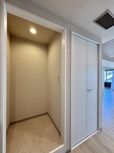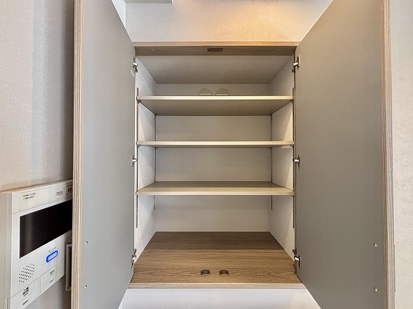 玄関・廊下には、トールサイズの収納が2つ設置されています♡大容量のため靴はもちろん、掃除道具や季節ごとの小物までしっかり収納可能。これだけの収納があれば玄関周りを常に整理整頓された状態で保て、来客時も慌てずに迎えられますね。
