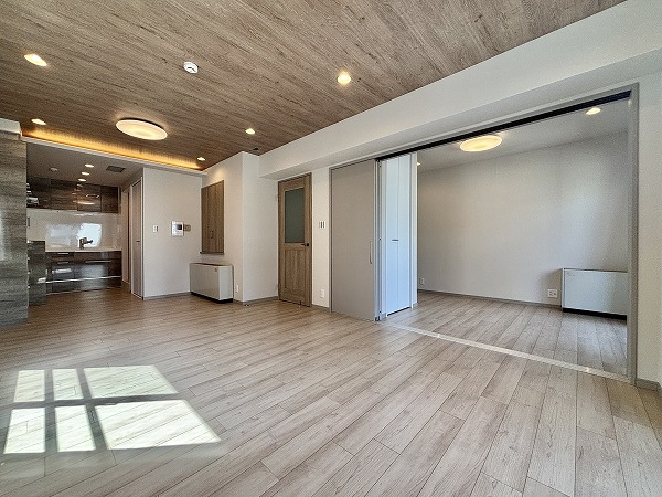 開放的でゆとりあるメインルームは、リビングとダイニングをしっかりゾーニングできる使いやすさが魅力。隣の洋室と一体化すれば、まるで大空間リビングのように。ライフスタイルに合わせて自由にアレンジできますよ◎