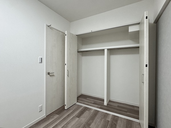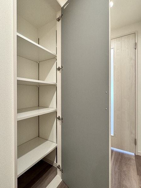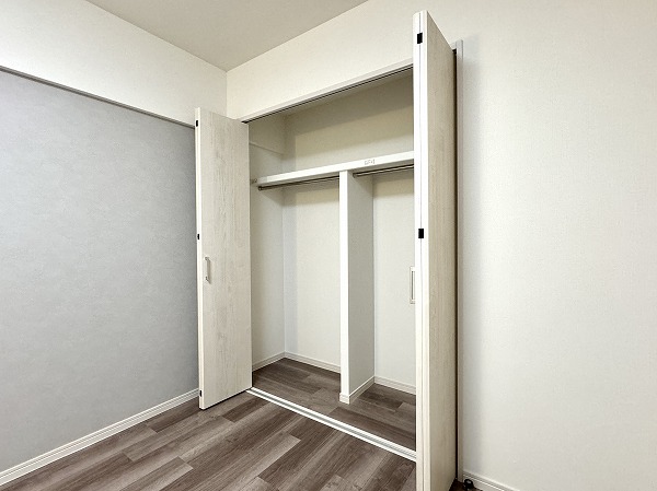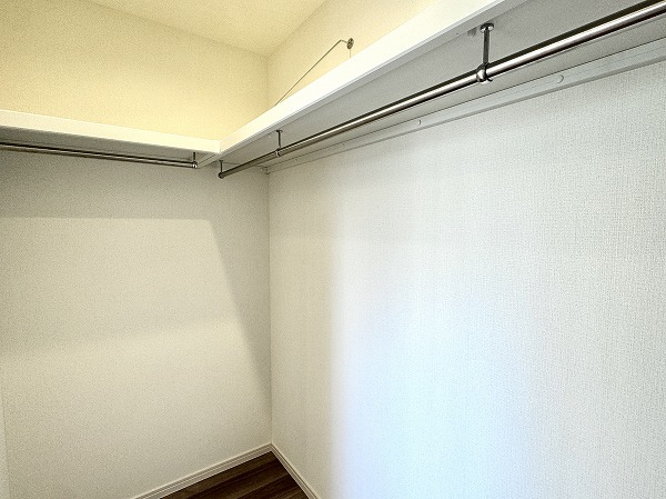 洋室にはゆとりのウォークインクローゼットを備え、衣類や小物をたっぷり収納可能。さらにサービスルームにもクローゼットが完備され、季節の道具や趣味用品もすっきり整理できます。家族それぞれの物をまとめられるため、居室を常に清潔に保てるのでは✦