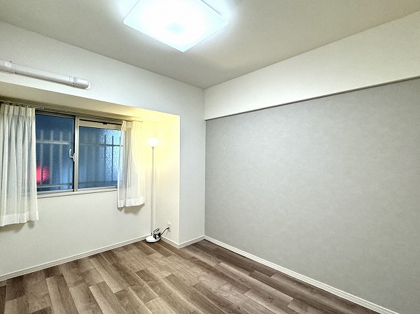 約11.8帖のリビングダイニングキッチンは印象的なアクセントウォールが目を引き、家具付きなので引っ越したその日から暮らしを始められます。コンパクトながらも居心地の良いレイアウトで、家具の配置も自由自在。新しい暮らしの中心として活躍してくれる空間ですよ。