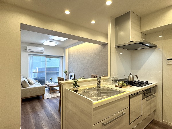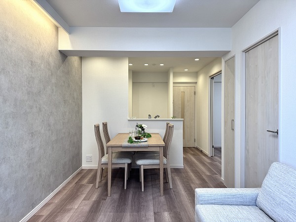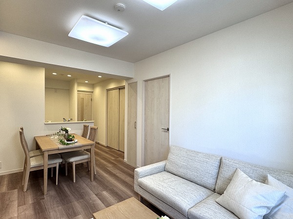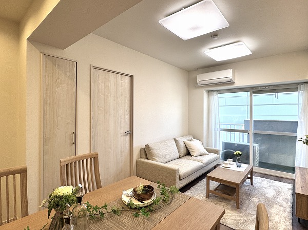 ご紹介するのは10階部分にある専有面積49.92㎡の2LDK。2人暮らしに無理のない広さで、毎日を心地よく過ごせそうなお部屋です。リノベーションによって室内は見違えるほど美しく生まれ変わり、すぐに新生活を始められる状態。さらに家具&アフターサービス保証も付いているので、長く安心して住めるのも嬉しいポイント。