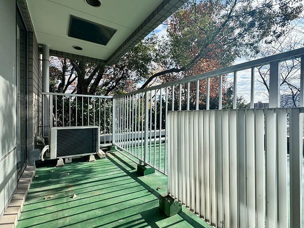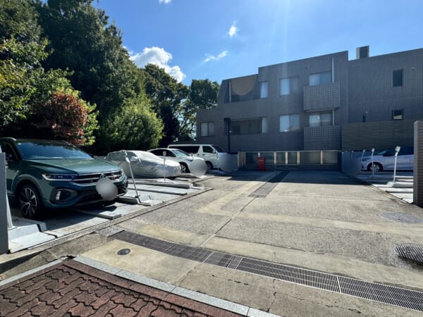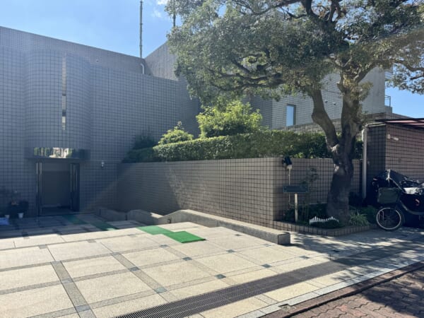 エントランスには大理石調のタイルが用いられ、足を踏み入れた瞬間から上質な空気感を演出。折り上げ天井とグリーンカラーの柱が空間のアクセントとなり、低層マンションでありながら印象的な佇まいです。オートロックも備えられており、日々の暮らしに安心感を添えていました。