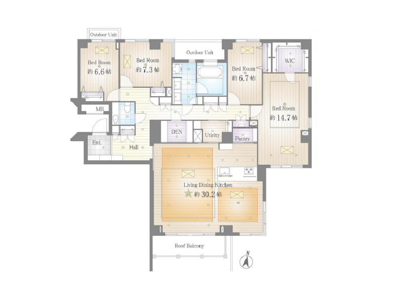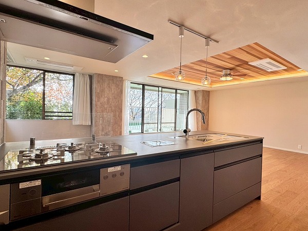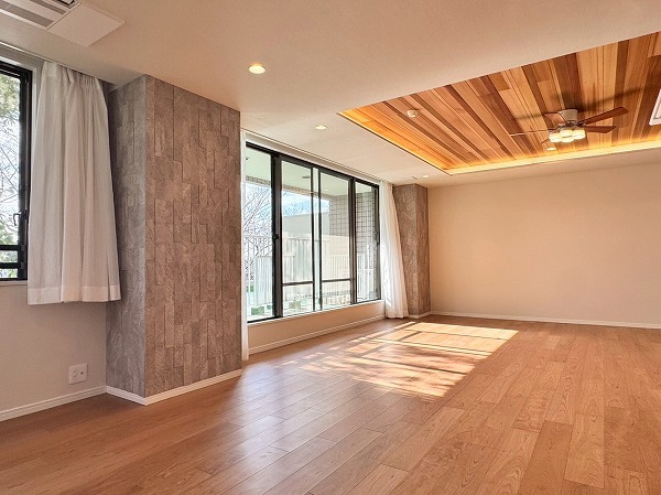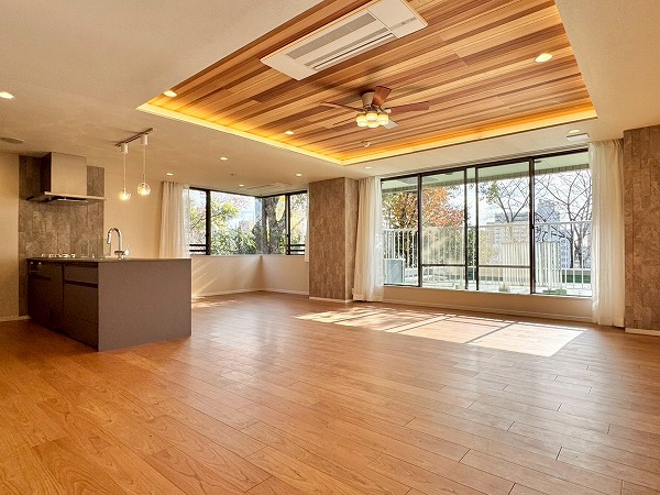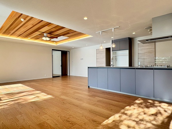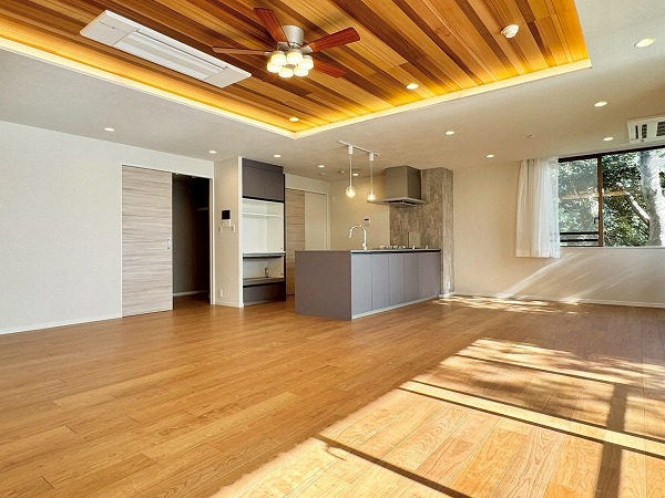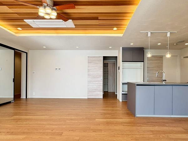 フルリノベーションが施されたばかりの室内は、まるで新築のような美しさ。専有面積164.42㎡の広さを活かした4LDKは、家族それぞれの時間を尊重しやすくライフステージの変化にも柔軟に対応。随所に取り入れられた木目の意匠が、住まい全体にやさしい温度感を添えています。