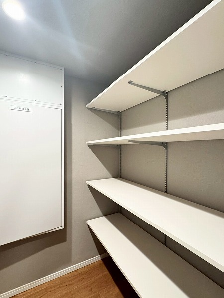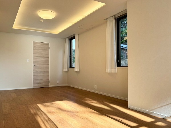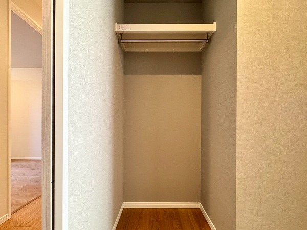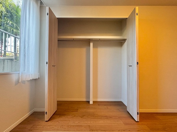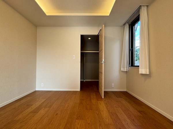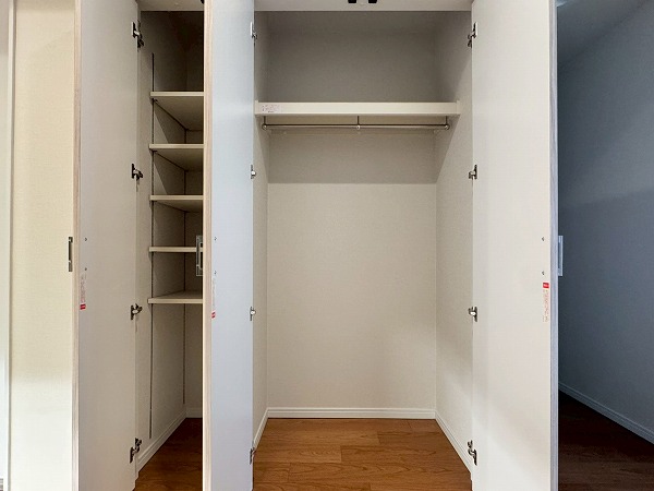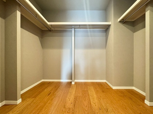 主寝室としても十分な広さを備えた約14.7帖の洋室。ウォークインクローゼットは家族全員分の衣類をまとめて管理でき、衣替えもスムーズに行えますね。生活感を上手に隠しながら室内を美しく保てる空間です。