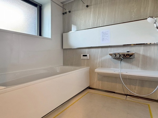 窓から自然光が差し込むバスルームは、明るく開放的な印象。ジェットバス機能付きの浴槽が日常の疲れを癒すスパのよう。また、足を伸ばしてゆったり浸かれるサイズなので1日の疲れを癒す快適なバスタイムをお楽しみください♪