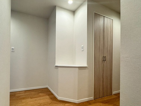 オートロックを抜けると、落ち着いた色調でまとめられたエントランスホールが広がります。奥には大きなソファを配したラウンジスペースが設けられ、来客時の待ち合わせや、ご友人とのちょっとした会話にも重宝しそう。